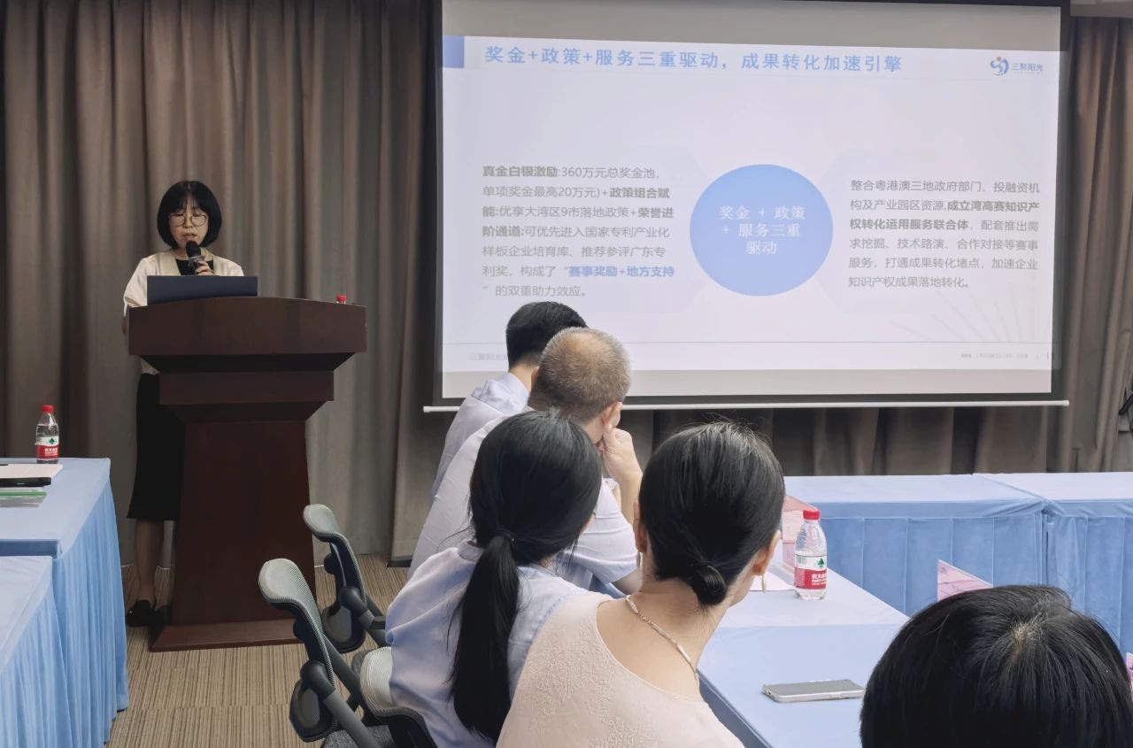 三聚陽光華南區(qū)項(xiàng)目總監(jiān)穆昭艷應(yīng)邀擔(dān)任主講嘉賓,她詳細(xì)介紹了第三屆佛山高價(jià)值專利成果轉(zhuǎn)移轉(zhuǎn)化大賽、2025年粵港澳大灣區(qū)高價(jià)值知識(shí)產(chǎn)權(quán)培育布局大賽以及第二屆長江經(jīng)濟(jì)帶高價(jià)值專利轉(zhuǎn)化運(yùn)用大賽的賽事背景、規(guī)則及申報(bào)策略。穆昭艷強(qiáng)調(diào),通過高價(jià)值專利賽事,企業(yè)能夠精準(zhǔn)布局知識(shí)產(chǎn)權(quán)保護(hù),提升市場競爭力,并實(shí)現(xiàn)技術(shù)成果高效轉(zhuǎn)化。